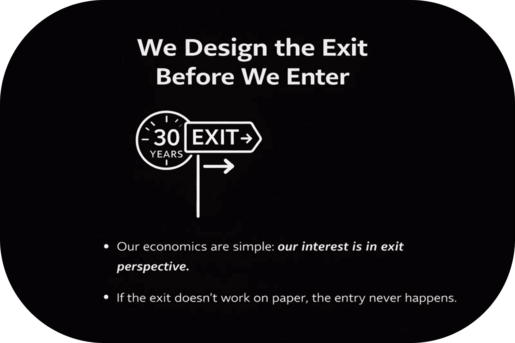 Assets are held based on market conditions and feasibility — not investor timelines.